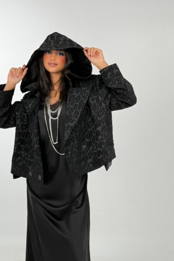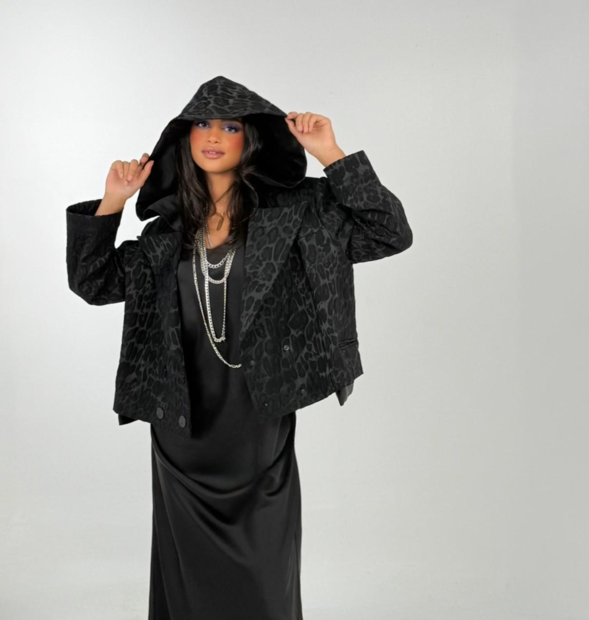 ALL BLACK BLOCKED TRENCH, LEOPARD JAQUAR...
